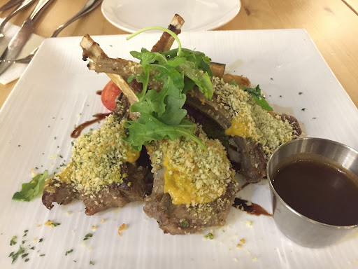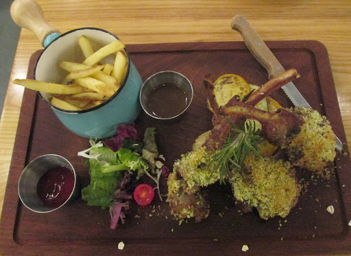 服務員遞上多份餐牌,有Dinner Menu、Kids Menu、Secret Garden Dinner Set和Drink & Dessert。 先來一客牛油果三文魚沙律 Avocado and Smoked Salmon Salad ($68)清新一下。三大片煙三文魚捲成花形,配上色彩豐富的食材,賣相挺吸引,未吃已令人胃口大開。內有大量新鮮爽脆的雜沙律菜、清爽的車厘茄、Superfood的羽衣甘藍、甜美的鮮菠蘿、清新的火龍果和香滑的牛油果,還灑上燕麥提子乾,配上橄欖醋汁,酸咪咪好醒胃。 一點也不吝嗇,足足有三大片煙三文魚,色澤鮮橙油亮,肉質肥美柔軟, 帶點煙燻鹹香,鹹鮮有致,拌着清新的沙律菜同吃最為適合。 老爸是羊迷,故我一早已替他揀了一客焗堡雲蘇羊架 Bake Lamb Rack Provençal ($178),足足有三大件羊架,配上薯條、烤蔬菜和沙律,相當豐富。 羊架七成熟,肉心沒有呈粉紅色,但一切下去便感受到它有多腍嫩!燒弄的時間拿捏得非常好,肉質腍嫩兼富肉汁,肉味香濃,能嚐到微微的羊羶,更顯羊肉風味。腍嫩的肉質夾雜少許肥膏,而外層亦撲上薄而香脆的麵包糠,配起來既油潤亦香口。個人特別喜歡近骨架位置的肉質,連帶肉筋,煙韌兼焦香,豪氣地拿着咬下來,相當滋味!吃時蘸上些燒汁,添些鹹香味道,配搭不錯,但還是覺得不作添加,原汁原味已美味。