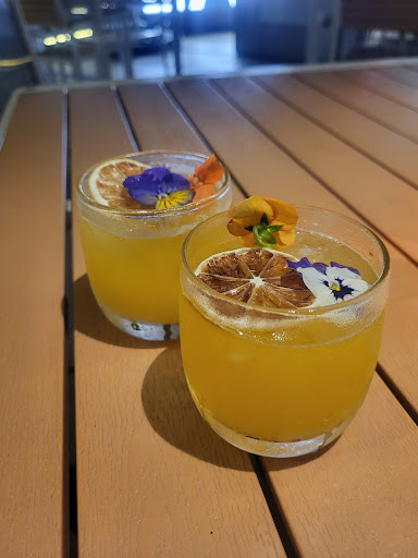 Rose fizz: This was a refreshing drink, made of rose, lychee, lemon and soda. It was sweet and floral, with a fizzy sensation. It was also very pretty, with a pink color and rose petals floating on top.