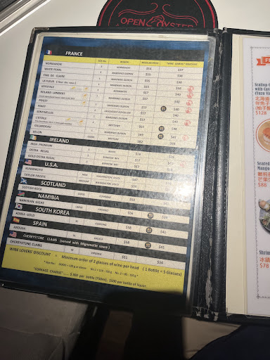 Read moreWe have travelled to many oyster places around the world. We have tried a huge variety of oysters. We love oysters. Maybe it is not a surprise that the best oyster place we have been to is this very unassuming place on Mody Road in Hong Kong. „Open Oyster“ offers 32 totally fresh oysters from around the world. Not the usual Fines de Claire No 2 which are small and salty and are on everybody’s menu. No! meaty, tasty and extremely versatile oysters, all of considerable size, are offered here. We totally indulged in this. The wines accompanying were good. If you do drink a Pinot Noir with oysters, make sure it is chilled. Some fried wedge potatoes give the necessary carb balance for all this wonderful energy! Prices are moderate! The satisfaction level is guaranteed in this place! Hong Kong rules...