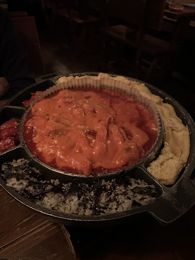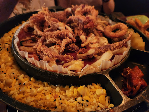 Read moreIf you’re looking for a culinary adventure that combines comfort, flavor, and a bit of theatrical flair, look no further than the Korean Style Cheese Chicken served in a sizzling black hot pan. From the moment it arrives at your table, the aroma is intoxicating, drawing you in with promises of melting cheese and savory chicken. The star of the show is undoubtedly the chicken, perfectly cooked and generously coated in a luscious layer of gooey cheese. Each piece is enveloped in a cheesy embrace that enhances the tender meat, allowing the flavors to meld beautifully. It’s a delightful experience as you pull apart the chicken, revealing the stretching strands of cheese that wrap around each morsel, making every bite a cheesy delight. Accompanying this cheesy goodness are delightful sides that elevate the dish even further. The Korean egg, soft and fluffy, provides a rich contrast to the crispy chicken and creamy cheese. The kimchi adds a refreshing crunch and a spicy kick that cuts through the richness, while the seaweed rice offers a nutty flavor and a satisfying texture. The small sausages are a fun addition, adding another layer of flavor that complements the overall dish.