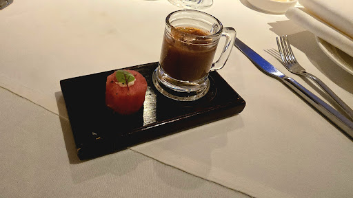 Appetizer: Ordered the prawns for appetizer. First of all, my appetizer came 20 minutes after my friend's oyster appetizer. After all that wait, got 2 prawns served with some type of broth with asparagus. Absolutely no flavor at all.a.d was utterly disappointed but stayed optimistic about my main course.