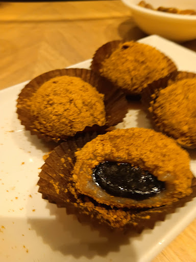 The best one for me is the desserts. Warm and soft and gooey glutinous rice balls with black sesame filling and peanut powder. Heavenly!