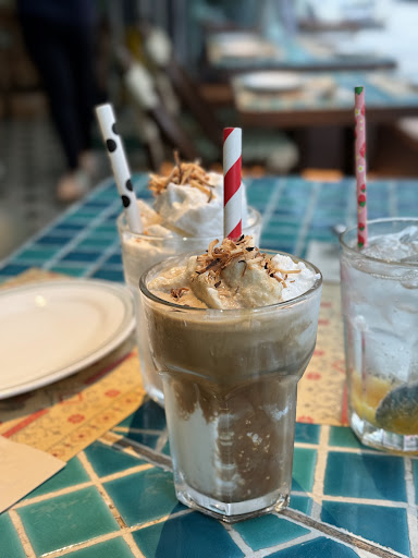 It is on the Michelin’s Bib Gournand guide, but it seems not very popular among the public. Not many customers in the restaurant so I can enjoy a quiet chitchat time with my friends. The Best dish of all I ordered is the Pla Phao. The skin is coated heavily with salt and baked with soft and tender. The flesh is very juicy and I can feel a hint of the herbs in the fish’s belly. The way to enjoy it is wrapping the flesh with lettuce, vermicelli noodles, mint leaves and dipping the wrap into the sweet and spicy sauce. The Khao soy and Larb Muang Moo are fairly ok. The soup of the noodles are fragrant and coconut-y. There are various toppings to pair with the egg noodles and the fried egg noodles. The noodles are ok but the toppings are perfect! The minced pork is very spicy and I like the chewy pork skin inside the minced meat. We each ordered drinks, and I order young coconut coffee. It is not sweet at all and the coconut tastes is much stronger than the coffee. It is a nice place to enjoy a good time with friends...