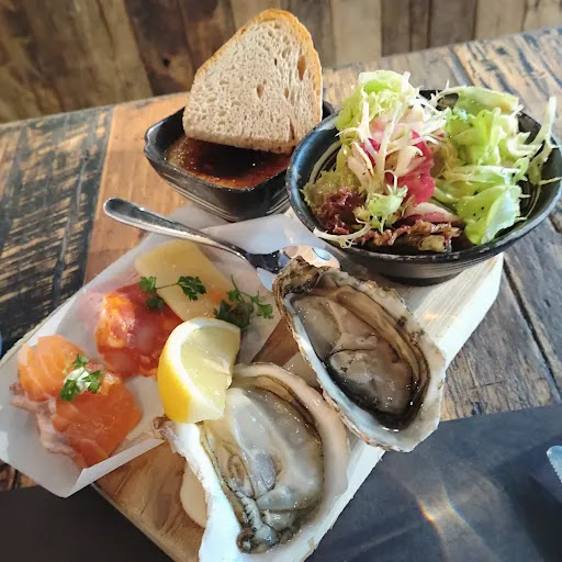 Food🍽 Platter with Bite Size 🦪French Oysters No.3 from Brittany 🐟House-Cured Salmon Gravlax served with lemon cream 🦆Foie Gras Crème Brûlée 🍞Toast 🥗Garden Salad with House-made dressing 🧀🍖French Cheese & Cold Cut Selection