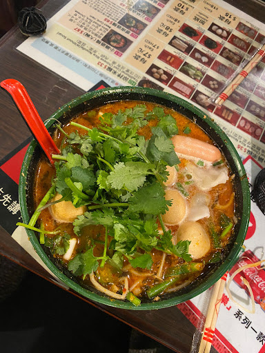 Read moreThe atmosphere here is pretty chill and since there aren't many seats, you may end up eating next to a stranger. I got the very little spice,no sourness, and it was perfect for me. Had that very slight bit of spiciness to give the dish a flare and the noodles were chewy in a good way. In case it is your first time here, when you enter, grab the red card by the table you are seated at and they will have a board full of pictures with the names of toppings on the menu. Then you will proceed to circle the items you want added and give them your red card. It came out pretty fast for me and overall, the experience was pretty amazing. I would highly reccomend and I heard that if you love spicy food, even medium spiciness is enough to grt you on your toes...