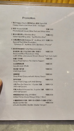 除咗有dinner set之外,仲有a la carte嘅主菜、餐湯、沙律及promotion items,同時又有不同款式嘅小食及生蠔可以佐酒,呢度嘅酒類款式非常多🤩,啱哂我哋呢啲酒鬼同朋友吹水歡聚🥂