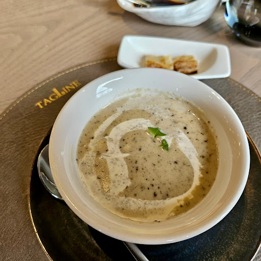 Truffle Mushroom Soup en Croute This truffle mushroom soup paired with crispy Papadam is bursting with aroma. The soup base is rich, and the freshness of the mushrooms blends perfectly with the unique fragrance of the truffles, enveloping the soup and making each spoonful a delightful surprise. The Papadam is crispy on the outside, and you can refill it after finishing.