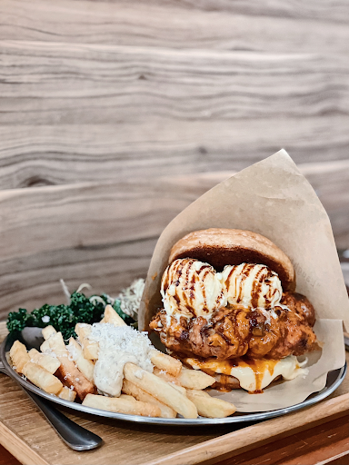 Read moreGigantic burgers!!!! Ice cream with buffalo chicken is an interesting and delicious combo. Sweet VS Savoury. Cold VS Spicy. What’s the best in this burger is the buttery crispy bun with a hint of sweetness merges the filling together. However, the ice cream melts too quickly and the chicken is over fried, ended up to be a bit dry. Sweet potato fries are thinly sliced and goes soggy fast. The sauce of peanut butter + maple syrup is creamy, thick and delicious. Grilled portobello beef burger is averagely ok according to my friend. For the fries, the flavour from black truffle is stronger than the cheese. It is a worth trying restaurant overall. Remember to go to the toilet before entering camel paint building as washroom is disgustingly awful which is...