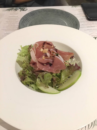 Let's begin with the atmosphere. The location's atmosphere was a mess. The moment you walk in, you're greeted with 2019's top 100 pop hits playing in the background, followed by confused decoration that screams 'beach grill party' with a dash of modern simplicity to spice things up. The lighting sat in a twilight zone of being neither quite dark enough nor bright enough, creating a muddy lighting atmosphere. Finally, the placement mats were terrible. For a restaurant that seemingly wants to be serious, their placement mats were paper with their menu printed on it. Not exactly fancy. To say the least, the atmosphere was anxiety inducing.
