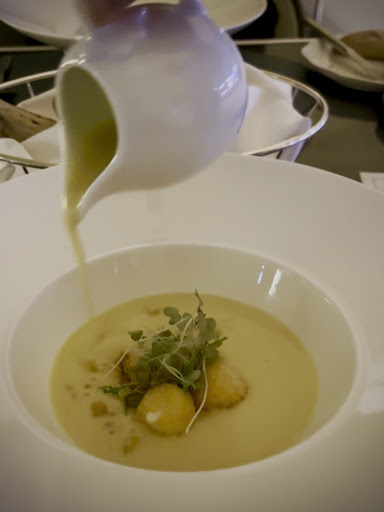 Beef tenderloin / Artichoke / Bone marrow butter (8/10) This steak preparation delivered intense flavors in every bite. Even with its thick cut, the beef was cooked to absolute perfection, with a rosy pink flesh that practically melted on the tongue. Enriched by a lush bone marrow butter and accompanied by caramelized artichoke hearts, the balanced flavors created a subtly complex harmony.