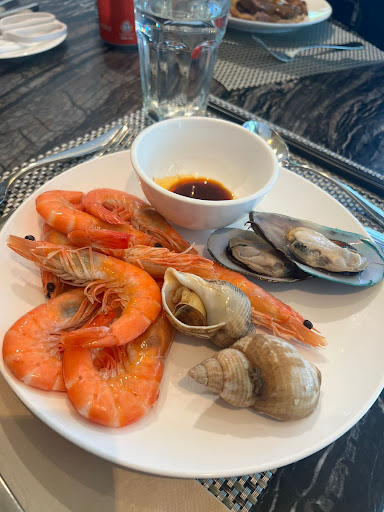 The buffet had a fantastic selection of fresh seafood. I started off with 8 pieces of shrimp, enjoying them with the tasty soy and chili sauce. After the first round, I felt so good that I went back and got another 8 pieces of shrimp (XD). They were incredibly fresh and flavorful. I also tried the scallops and beef, both of which my colleagues had recommended. The beef was tender and the scallops were cooked to perfection.