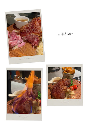 ✨火焰德國鹹豬手配芥末汁 一開始會即場有火焰點綴🔥豬手大大隻[色]豬手皮好脆,肉既口感好淋,而且可以骨肉分離,配埋芥末汁好好味
