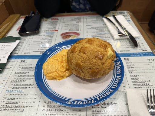 I ordered a pineapple bun with butter and it was nicely warmed up so the butter inside melted a little. It was served with scrambled egg and a drink for a deal price. It was delicious and super fluffy and light inside whilst crispy and sweet outside. The French toast was also deliciously light and crispy with a butter heart and served with condensed milk.