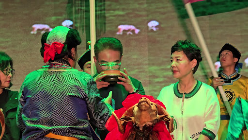 In hindsight, it was a mistake to wear their Mongolian costumes in summer cause itโs so warm in summer. Food spread was elaborate but taste was quite mediocre. The roasted goat was okay, not as gamey as I expected.