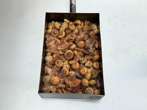 향신료에 아주 범벅이 된 삼겹살과 양송이버섯 그리고 통마늘, 매 한입마다 맥주가 술술 들어갔다. 적당한 두께의 삼겹살은 바삭한 겉면에 속은 촉촉했으며 육즙도 꽤나 담고 있었다.