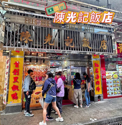 店裡空間極小 座位很擁擠 那天我們6人擠一張圓桌用餐 但如果人少的話就要和別人併桌 服務態度很急但不至於不友善 點完餐後食物也很快就送上 吃完也不會趕客人 翻桌率也挺快的 不得不說陳光記生意真的超級好 不僅觀光客慕名而來連澳門本地人也愛 難怪即便非用餐時間也是排隊