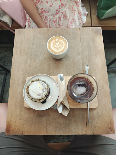 In general, coffee shop is a luxury in Macau. This independent coffee house was no exception. The overall design of the coffee place was minimal and does feel like a hipster coffee place. However, it is not spacious and seats are not comfortable (wooden stool and bench). Everyone is literally an elbow away. We went there when the shop open. We ordered the cake set (98 MOP) and a ice long black (42 MOP). The portion size of the latte is like the shop design, minimal. The tart itself is okay (early grey and chocolate tart, you can taste the tea and it is well balance with the chocolate, but the tart base feels like eating cereal brick) but not worth the selling price (65 MOP). The long black is clear and balance, with a good sweetness and not too acidic. Overall, unless you have lots of cash or bringing your own cushion. I don't recommend this...