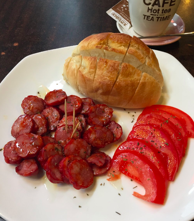 This is a good place for cooked 'European' style breakfasts for those seeking a bite to eat away from the hotel. During 2018 CNY, I stopped here and enjoyed a place of chorizo (MOP95) that was a large serving and came with a freshly sliced tomato and hot Portuguese style bun. This was nice sized breakfast and tasted very good. Chorizo was spicy, flavourful but not hot.