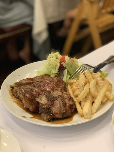 The staff was kind but the quality of the food wasn't great. I took a rib eye steak with fries and salad, the steak quality wasn't great and the water from it plus the salad condiment made the fries wet so they were not anymore like they suppose to be. They served almost all together like it usually happens in Asia but for sure not an European style so you end up to eat something not warm anymore. I saw in the menu some dish that I've never seen in Portugal so probably just a place that wants to accommodate the asian tastes. Anyway Macau it is not for sure a place where to go if you like to eat good so among the other options this...