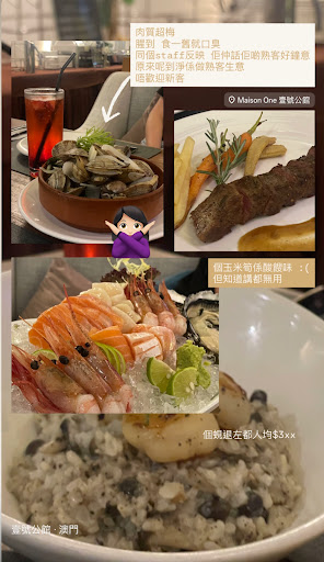 Lunch, so called full buffet. MOP168 Half-buffet was available before. When reservation is made was confirmed half buffet is available (price MOP98-128). Arrived 28jan2022 was told it is a full buffet and charging MOP168. Fine. Menu: 3 hot cooked veg (carrot, potato and white radish, In boiled), pig ear (boiled, Chinese style), pork rib (boiled, Chinese style), salty pig leg ( yes, also boiled in Chinese style), one chicken ( taste like those white bbq chicken in Chinese style) Roasted beef (average I should say) two types pizza ( cold, hard to chew) two soups ( pumpkin soup, forgot the add salt, taste like sweet soup, and one Chinese style soup, haven’t tasted but seems like normal Chinese pork bone soup) fire rice Fire noodle. Potato salad ( surprisingly good) Plain salad ( just plain veggies, not even tomato available, one type of salad sauce only ) two types of cakes (cheese cake and one other type chocolate cake in cube)