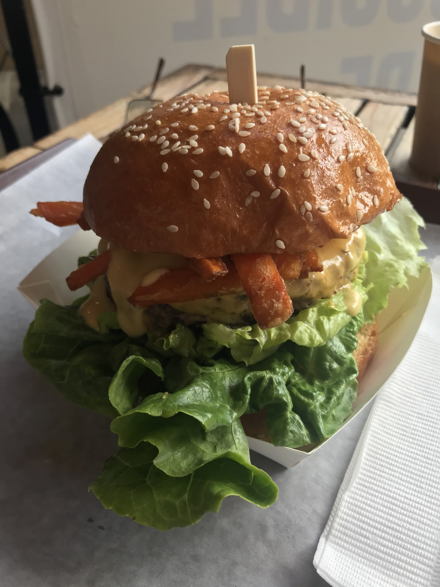 Just looking at the lettuce leave u know if this is a burger that made with passion. The patty is very juicy and cooked just right. Juice kept dripping out when eating it. The blue cheese burger really worth trying and the great thing is, the blue cheese hasn't taken away the beef and complimented very well. A nice little neighborhood store with very limited seats and self service but the owner is very dedicates. The burger really makes this little place shines.