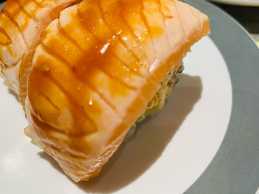 Seared to bring out its natural oils, the seared salmon sushi is a flavorful and aromatic treat.