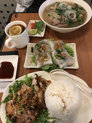 The food here is worth checking out! We tried the beef pho, grilled chicken with rice and a steamed Vietnamese style ravioli. The latter two were not bad but not anything special. However we quite enjoyed the pho! It had a nice combination of ingredients like beef ball, tripe, tendon, raw and cooked beef. The ones I've had in the past typically had one or two types. Such a combination is rare! Quite common back in Oz and I suppose in Canada! Soup was also not overpowering and salty but still had a nice clear flavour. Ice coffee was a bit disappointing. Go try the pho if you're heading...