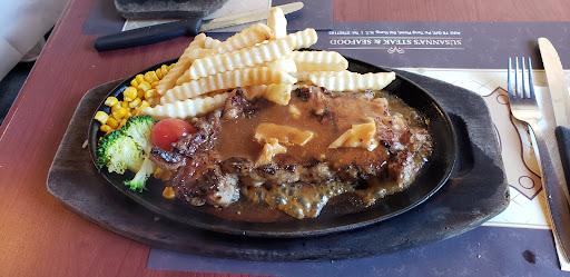 The food is amazing. The balanace between the fat and meat in the steak sirloin is acceptable. The fries are fresh, and acompanied by suitable sauces.