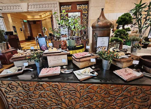 Read moreSOFITEL HOTEL MISTRAL Restaurant 澳門十六浦索菲特酒店 海風自助餐廳 澳門巴素打爾古街(俗稱十六浦) 索菲特酒店5樓 30-5-2023 因疫情久違了三年多的海風自助餐廳,今日重臨,餐廳依舊,人面全非。不愧是由專業酒店管理人員的餐廳(高層管理人員應是來自法國),環境與出品依然保持五星级水準,不因更換了服務員而有差别。 餐廳保持簡潔明亮,座位编排得闊落,靠窗的一邊的圆拱型大窗可望園景及游泳池,一派歐洲宮廷式風情,樓底較高,坐得舒適。可能是氛圍問題,客人取餐及進餐時比較寧靜優雅,沒有那些大聲談天及孩童跑來跑去的嘈雜。 食物出品方面,主打歐陸式宮廷路線,由外籍大廚Angelo 先生及華籍大廚Yuen先生主理;酒店及自助餐廳的餅部是由華籍大廚Owen (已在索菲特海風餐廳多年),出品仍然是五星級水準。 食物方面,包括,凍海鮮,沙拉,切腸/火腿/切肉,冷盆,生魚片/壽司,麵包,芝士,熱食,及刀削麵,飲料有蘋果汁,橙汁及西抽汁。 ⑴. 沙拉:Bostn Lettuce 波士頓生菜;Romaine Letuce羅馬生菜;Red Cabbage 紅葉甘藍,Frisee 苦苣;及 Lollo Rosso 羅莎紅全部用纸質袋乘載,乾身新鮮。另外有櫻桃茄,青瓜片,麵包粒,乾煙肉碎。Dressings 沙拉汁有Cesar Dressing凱撒汁; French Dressing法式汁; Thai Dressing 泰式汁;Cribche Dressing 克麗貝瑞汁;Seasame Dressing芝麻汁及Lemon Vinigrotte 檸檬油酸汁。 (2)已經拌味的沙拉凍盆有Thai Beef Salad 泰式牛肉沙拉;Long Onion Salad 大葱沙拉;Mushroom Salad,蘑菇沙拉Mimosa Egg Salad 雞蛋沙拉 Pumpkin Salad 南瓜沙拉 Duck breast Salad 鸭胸肉沙拉;切腸,火腿等也有四種。 剛看沙拉及醬汁,便知餐廳是由法國人管理。在正宗的西餐廳,點一碟沙拉凍盆已經要超過一百元港幣。 (3)芝士也是自助餐的靈魂,愛好芝士人士的福音,有五種芝士 Blue Cheese 藍芝士 Cheddar Cheese 車打芝士 Emmental Cheese 大孔芝士 Brie Cheese 布里芝士 Edam Cheese 红波 配以長棍法包或克力架或蜜瓜,真是人間美味(喜歡芝士人士)。 (4) 日式有: 生魚片有三文魚,吞拿魚及鯛魚,相當新鮮及有四款卷物,比較單調了點,但始終是法國餐廳,日食非主流。 (5) 凍海鮮:有蝦,蜆及蓝青口,蝦鮮甜,蜆比較小了點,肉不夠飽滿 (6) 熱盆分開中西式: 中式有 蒜子炒時菜 煙肉炒飯 蘿蔔炆牛雜 雜菰炒豬内 栗子炆腩肉 雜菜雞球 炒四季豆 香燒刀魚 西式的有: 法式炆鸭腿 法式燒雞 匈牙利燴豬肉 焗腸 焗薯 麵檔 刀削麵 廚師即席削麵 配料有豬肉丸,牛丸,脆腸,牛餐肉,草菰及雲耳。 甜點: 餅食出品是出自酒店自助餐餅房,餅房大廚Owen 手藝了得,款式不少,美倫美煥,不同節日有不同主题。當日所見,一位餅部的小姐姐,整個午餐時段駐守餅架,見被顧客攬亂的饼立即整盆移走,更換一盆新的出來,在其他自助餐廳很少會注意擺設的美觀,因此很多顧客拍照(打咭)。 服務方面,值得嘉許,所有餐廳的服務員由餐廳經理Mr. Jack Huang, 帶領 Miss Fatima 及 Miss Shirley...
