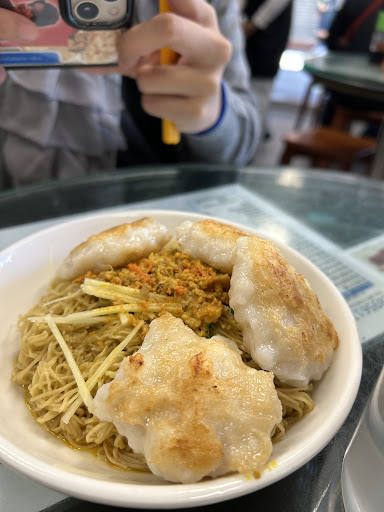 We tried order with showing picture at the phone. No english is allowed. It's available 蟹黃水餃撈麵 and 咖哩牛腩麵. But failed to order 墨魚餠. Maybe sold out on that time. Instead, ask for 蟹黃鮑魚粥. It's posted on the wall.