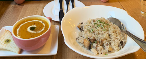 Tasty vegetarian wraps and sandwiches, with great service alongside. Portion sizes are very good, we ordered just one item each and it was plenty for lunch. The team speak good English and I think the waitresses in particular are polite, very friendly and welcoming. Menu with photos on an iPad to help you decide but you can also take the waitress’ (Iza’s) recommendation, as we did. I wasn’t keen on the faux meat, so landed on a falafel wrap. We charged our mobile phone also. Nice Christmas music playing as we ate. Service is perhaps not lightning fast, but the brief (5-10 minutes) wait is worth it and shows they make the food fresh to order. There is an upstairs toilet for customer use, which was clean and comfortable.