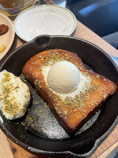 I have a bone to pick here. I really wanted some french toast, and we asked the lady at the front if they served toast. She said no, but we saw it on the menu lol and decided to give this place a try. I tried to order online via QR code but they wouldn’t allow me to customise my french toast, because I didn’t want the pistachio crumbs. I waved one lady over; she couldn’t answer me and she directed a more senior server to me. This server was initially helpful; checking with the kitchen that the french toast also had pistachio sauce, and that if I took away the pistachio, the kitchen staff believed it would be too plain. Despite this, I continued with this order and repeated that I wanted no pistachio. He informed me this would take 20 mins, which it did. My freaking french toast came with pistachio. The original server was not here (probably off work or on break) so I wasn’t able to find him to ask what happened. I was so sad and disappointed that after all that checking and making sure my order was what I expected, it still managed...