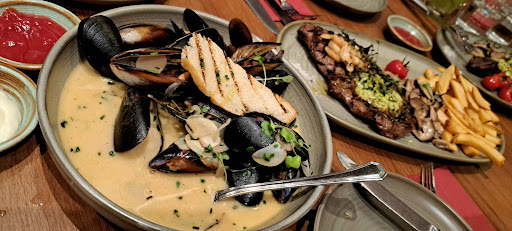 Recommended drinks: non alcoholic cocktail. Foods: steak...