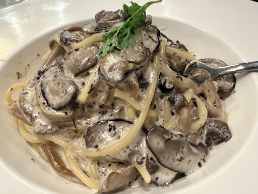 Range of pastas and mains, I'm looking forward to trying more of them. Tonite was pumpkin soup - served in a cup, rich flavor; creamy spinach, I often order the dish at steakhouses and it was superior; truffle mushroom pasta, generous portion, bon appetit! Oh, and my favorite dessert is always the crème brûlée, which they serve. Definitely having that again when...