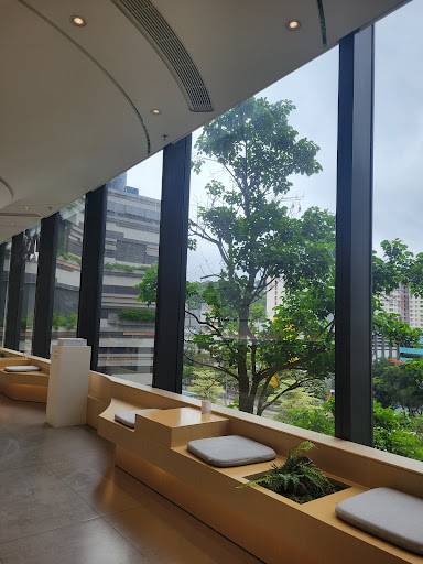 Beautiful minimalistic design. Self service infused water 💧 station. Lots of seating, high chairs 💺 for babies 👶. Regular price for HK.