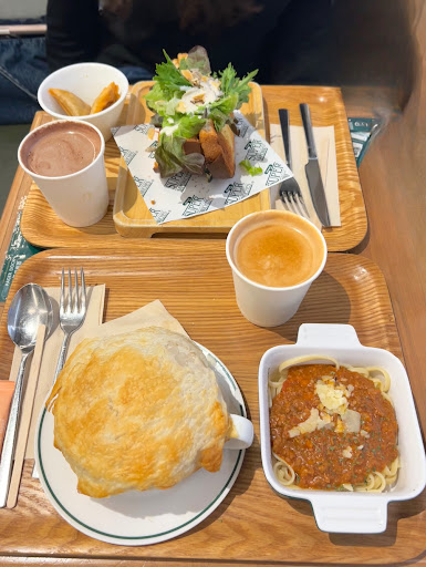 ย ย ย Read moreCame here with my friend because we were looking for somewhere to study and grab food. Itโs a nice spot for working if you enjoy a bustling atmosphere in the background and there was a ton of seating open when we went (6pm). They had a variety of food options and the prices werenโt bad. I ordered the mini pasta with the puff pastry soup and my friend ordered a sandwich with samosas. It was my first time trying a puff pastry soup and it was delicious! I got the Italian vegetable soup and it came out hot and fresh, tasted super flavourful and paired well with the pastry. I got the bolognese pasta and it was a good portion and tasted yummy as well. However, our absolute favourites were the rose drinks that we ordered with our meal! We got the rose hot chocolate and rose latte and it was super impressive and tasted great! Only thing was that staff were not very friendly and didnโt try to help us. Overall, the food and atmosphere was great and we plan on coming again...