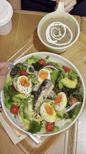 As for dining in, I recommend you all to try the ๐๐๐๐ฅ๐ญ๐ก๐ฒ ๐ ๐๐ญ๐ฌ ๐๐๐ฅ๐๐ - ๐๐ฏ๐จ๐๐๐๐จ โข ๐๐จ๐๐ญ ๐๐จ๐ข๐ฅ๐๐ ๐๐ ๐ ๐ฌ โข ๐๐๐ฉ๐๐ง๐๐ฌ๐ ๐๐๐๐ฐ๐๐๐ โข ๐๐ฒ๐๐ซ๐จ๐ฉ๐จ๐ง๐ข๐ ๐๐ซ๐๐๐ง๐ฌ ๐ฐ๐ข๐ญ๐ก ๐๐จ๐ซ๐ญ๐ฎ๐ ๐ฎ๐๐ฌ๐ ๐๐๐ซ๐๐ข๐ง๐! This salad ๐ฅ is not only refreshing and fulfilling but also gives you all the protein you need! Even better when partnered with their ๐๐ซ๐๐ฌ๐ฌ-๐ ๐๐ ๐๐๐๐ ๐๐จ๐ง๐ โข ๐๐ฎ๐๐ซ๐ญ๐๐ญ ๐๐ฎ๐ฌ๐ก๐ซ๐จ๐จ๐ฆ ๐๐จ๐ฎ๐ฉ, which is so creamy and rich in flavours! ๐