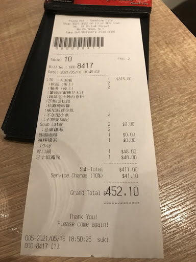Note: Pizza Hut has a good online ordering system now so you can login and order delivery or take-away throughout Hong Kong, including from this branch. We have done this a few times this year and found the take-away pizza from the MOSTown branch to be pretty good.