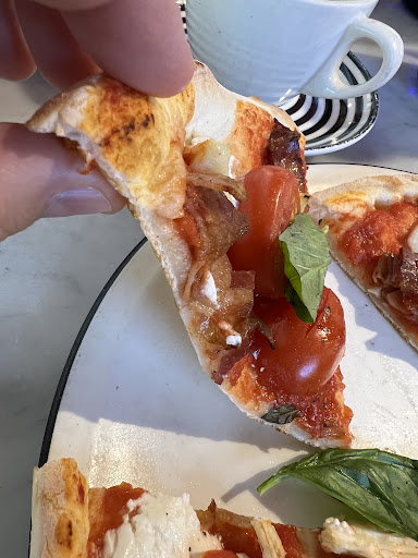 (Burrata mozzarella, olive, cherry tomato, fresh basil, Parmesan, rosemary, tomato sauce) The burrata and basil were placed after on top of the warm crusty pizza. The burrata slowly melt like cream; the chemistry of burrata and fresh basil gave a light and refreshing taste to the pizza.