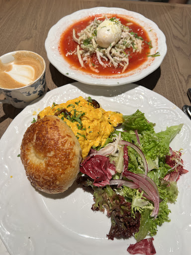 Read moreIt was acceptable to wait ~10mins during a hassle lunchtime. Staff were efficient and polite even under the crowded pressure. Menu gives variety options, both light or heavy options. We asked for the grilled fish and an egg florentine. Soup of the day was carrot soup. Hint of sweetness with a drizzle of cream for richness. It was served with a huge slice of baguette. Crunchy crust with soft crumb. Grilled fish was crispy on the skin. Even it was sit in the pond of sauce, it was not too rich and heavy. It was on an oily side, but okay. Nice to have some grilled side vegetables. Egg florentine was alright. One poached egg was slight overcooked without a runny egg yolk. Surprisingly filling, maybe because of the big slice of baguette served with the soup and quinoa topped. Sad to have two slices of spinach topped. Anyway, not bad. Fruit tea was pretty sweet even asked for less and no...