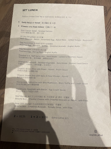 FOOD: I expected better. Price is decent $68, but the food could be better. Love the pastry (photo seen below), but the 天使麵 and the scrambled egg cheese bagel was definitely not what I was hoping for. The 天使麵 was basically just noddles with tomato space + poached egg on top. You could buy noodles like that at a local Hong Kong breakfast place, and it would still taste better than this one at Simple life. The scrambled egg cheese bagel was mid to say the least, just some eggs with a slice of bread. Nothing special about it… coffee cost an extra $21 and the tea cup was so small. The cups they used to serve the coffee are like the ones you play with when you were young. Pastry was the only one to save the whole entire dish, or else this would be a disaster. Love the layers but still could be better.