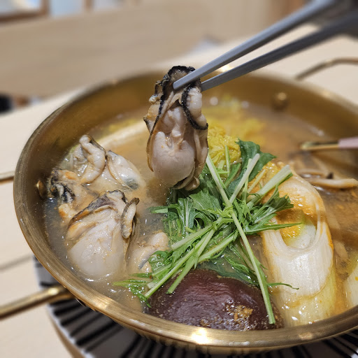 🥢廣島蠔土手鍋$88 鍋裏面有好多蔬菜,包括有娃娃菜、大蔥、紅蘿蔔、水菜、冬菇、金菇、本菇及豆腐,所以湯底帶着濃郁而鮮甜嘅蔬菜味,主角廣島蠔,鮮甜嫩滑,呢個鍋物好味之餘仲營養高纖維高👍;加$20仲可以升級套餐,有白飯及三文魚頭麵豉湯添😋