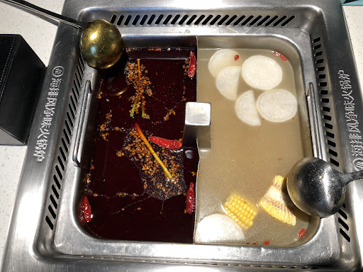 They were sold out of the pure spicy pot when I was there, which was a bit disappointing. Instead, I got the 麻辣酸菜鱼火锅 split with their specialty 番茄 broth ($80). The former wasn't nearly as numbing and spicy as I'd hoped, but they were happy to come out and add more spices to the pot. It came with a whole order of fish which could then be split between the two sides of the pot, as well as firm 豆花 that was cooked in the pot and then mixed with a very numbing and spicy sauce for delicious results. The tomato broth was more of a noble experiment, and it was interesting, but I don't think I'd want to order it again.