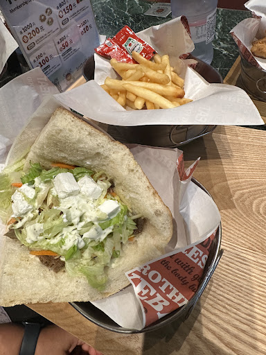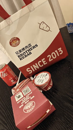 I've traveled from afar to replenish my body's 'pitaine'-values and after scouring countless Chinese cities in search of my garlic-laden quarry, I finally stumbled upon this fine kebab establishment. Needless to say Brothers Kebab cannot be compared with its European counter parts. The shop's lack of flatscreen television showcasing the 100th rerun of some shady Turkish sitcom and lack of balding middle-aged Turkish man sitting in the corner spitting sunflower seeds whilst commenting on the programme under his breath, reminded me once more that I'm a long way from home. Instead, I found a young Chinese woman eating rice in the corner, completely oblivious to the divine halal food within arms reach. However, I was happy to discover that Brothers Kebab provided both regular mutton as well as chicken kebab. To find garlic amongst the sauce options almost lifted my spirit to absolute nirvana. The only thing keeping me from actually reaching this perfect state of durumation was my wrap's lack of vegetables. The one thing that absolutely blew my mind was the revolutionary option to assemble your own kebab menu. For only 20 RMB extra you can combine a pita/durum with fries and a beverage of your choosing. It seems the Chinese lifted their thinking to a frequency unreachable for us puny westerners. Brothers Kebab is not a hundred percent what we're used to in Europe, but that is absolutely okay. Travel broadens the mind and so does eating kebab in different countries. I've learned that the path to happiness is not one-sided and simple, but rather complicated and frightening. Luckily, I had Brothers Kebab lovingly reaching out its hand, guiding me through the dense forest that is searching for quality food...