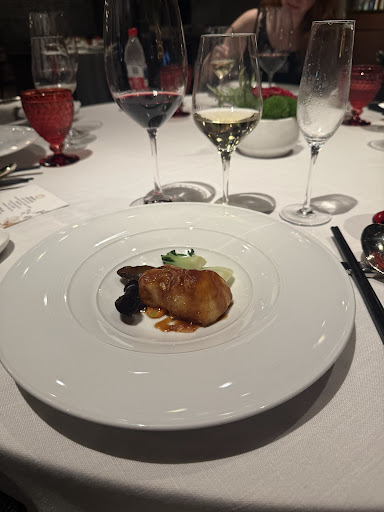 The evening opened with promise. The Foie Gras Paste with Black Truffle, Smoked Vegetable Roll, and Barbecued Crispy Pork were immaculately presented, each bite a clear testament to the chef’s technical prowess. The Double-Boiled Sea Whelk Soup with Bamboo Pith and Matsutake Mushroom followed, a comforting, aromatic affair executed with precision. There was not a single dish that faltered technically: from the succulent Baked French Codfish with Ginger and Scallion to the luxuriously tender Braised Abalone (20 Head), each course mirrored textbook perfection.