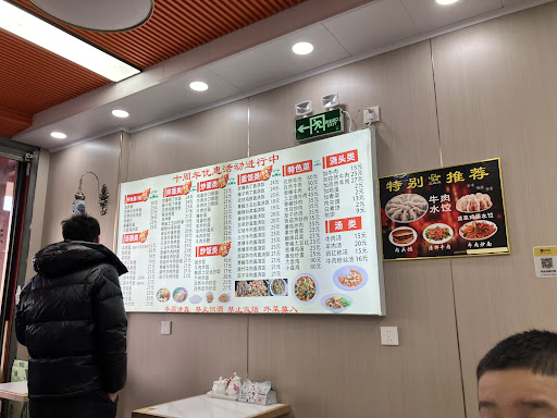 Okay this is going to sound weird, but this shop serves the best 肉夹馍 (roujiamo, burger-like dish from Northwestern China with ground meat and veggies) I've ever had. It was prepared by this smiling woman (maybe of Uyghur origin?) and it cost me 10 yuan (1.5 US dollars). I also had a soup of knife cut noodles and some cold marinated cucumber slices, everything was good (I was so happy I gave 50 instead of the asked total of 32) but the 肉夹馍 was absolutely awesome. It had obviously just been made, was served in a tiny paper bag, and at my first bite this tiny ordinary looking noodle shop became my own little 肉夹馍 temple -- yes, temple! The seasoning is perfect (the cumin is strong but not overpowering), the balance between meat, onion, etc., is just right, and the bread... I don't know what they did to it, maybe some toasting, roasting, steaming -- wherever they did, they did the right things and in the right order. Slightly crispy outside, tender inside, much unlike most instances I've had so far where the bread is mushy and really isn't designed to offer anything interesting apart from being a vehicle for the filling. I had a plane to catch (and had already mostly finished my noodles) or I would have ordered two more. At least. But that terrible mistake shan't remain for very long without a redemption. I will be back on regular...