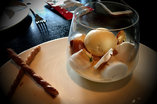 The signature dish at Hakkasan is the crispy duck. This dish is delicious and you can think of it pretty much as Peking Duck with cavier. The real star for me is the lemon pot. I think this is close to a perfect dessert. It is fun and whimsical. A joy to look at and tastes amazing. You get sweet, tart, fat and crunch with this dish. The merengue pairs nicely with the richness of the cream in the pot. The richness of the dish is balanced out by the acidity coming from the lemon. I would come here just to eat...