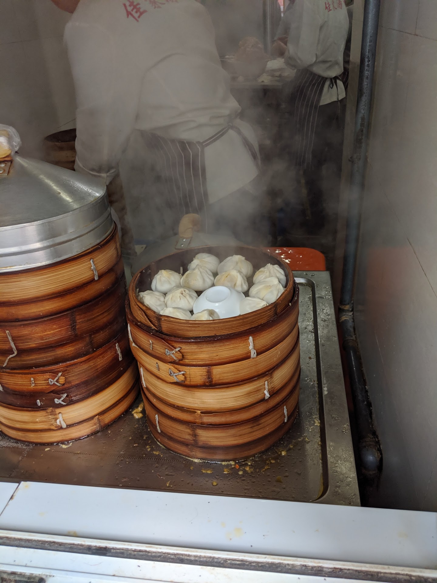 The 3 of us ordered only one steamer tray of pork xiaolongbao (costing CNY15), and the cashier (presumably thinking this was "too little") warned us that we wouldn't be able to subsequently add to our order. No problem. After all, we had only come from Yang's Fried Dumplings across the street!
