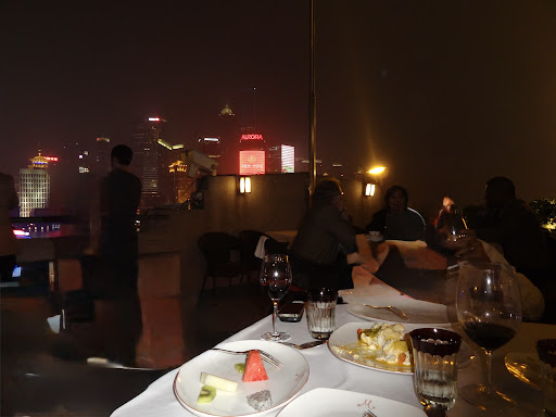 The view you get is exceptional from their terrace area, which we always snuck out to in-between our courses and to enjoy finishing off our bottle of wine before our dessert came out. You're about 5 stories up from what I remember and can see all sides of the Huangpu river.