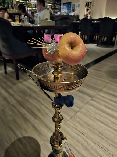 I started with a Turkish coffee which was delicious strong and refreshing with a fresh zing of cardamom coming through. I had the peach and honey hookah.... excellent.